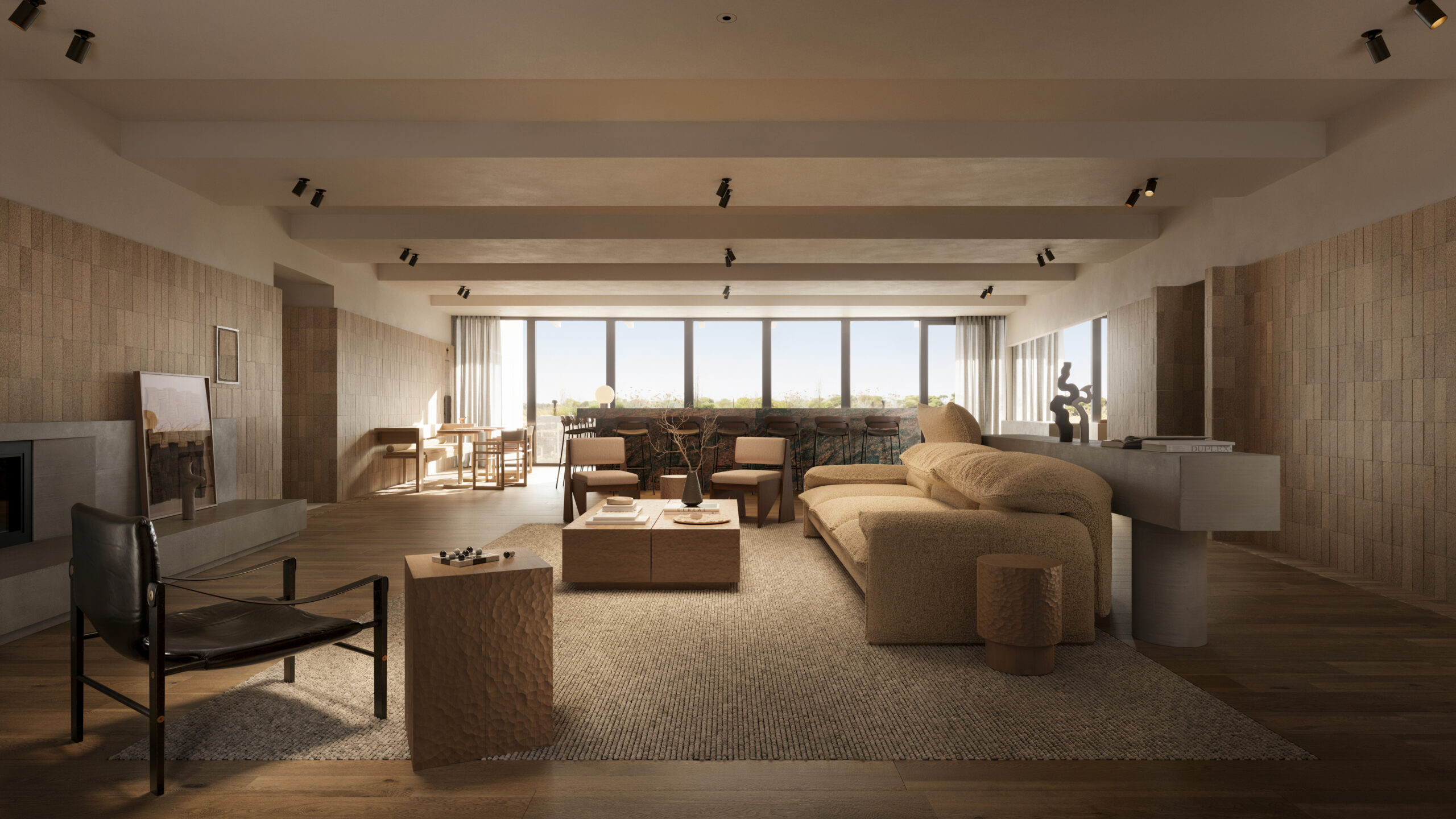The main lodge has an exclusive restaurant, private dining space, swimming and plunge pools, a gym and pickleball court, and an outdoor lounge and firepit.